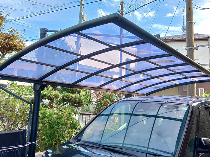 カーポートやテラスの屋根。経年劣化で曇ってしまっていたり、強風でめくれてしまったり、一部破損したりしていませんか。