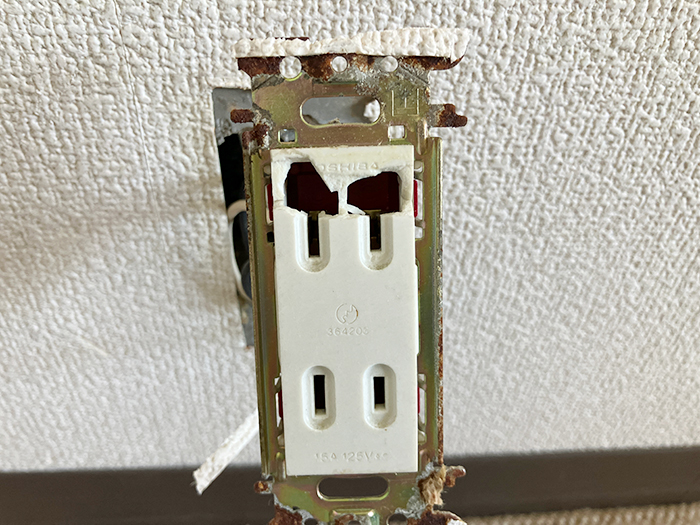 スイッチが付かない、コンセントの一部が割れているなどはありませんか。どうしても経年劣化で接触不良を起こしていたり、何かをぶつけてしまっていたりで壊れてしまうことがあります。