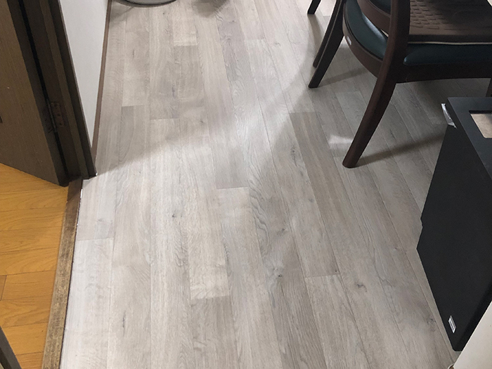 マンションは管理規約により定められた(L45,L40等)防音等級のフロアをボンドで施工していきます。