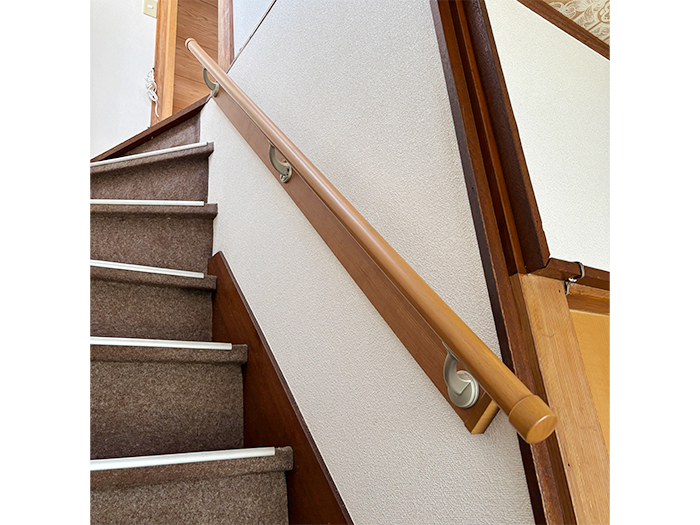 滑りや転倒防止に手すりを付けましょう。インテリア性に富んだ木製です。