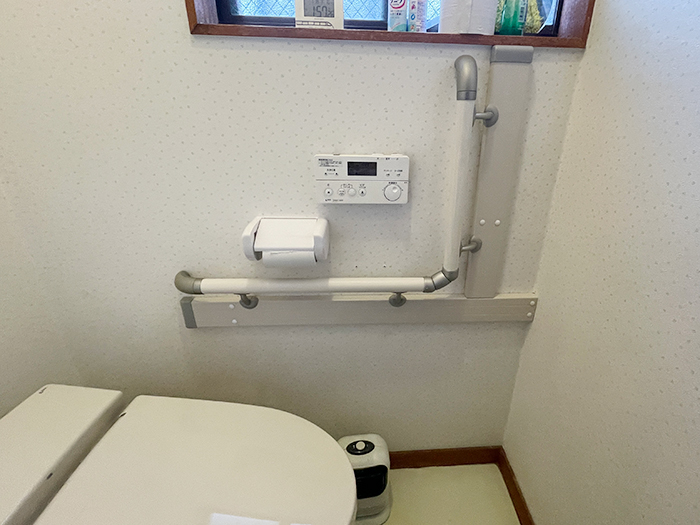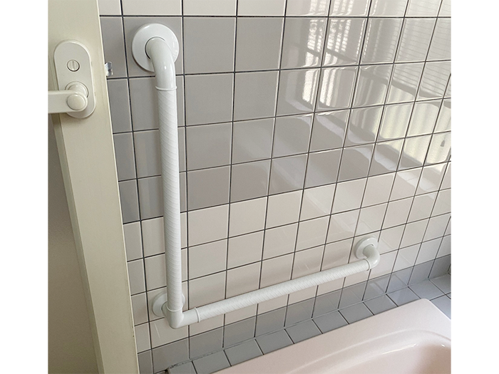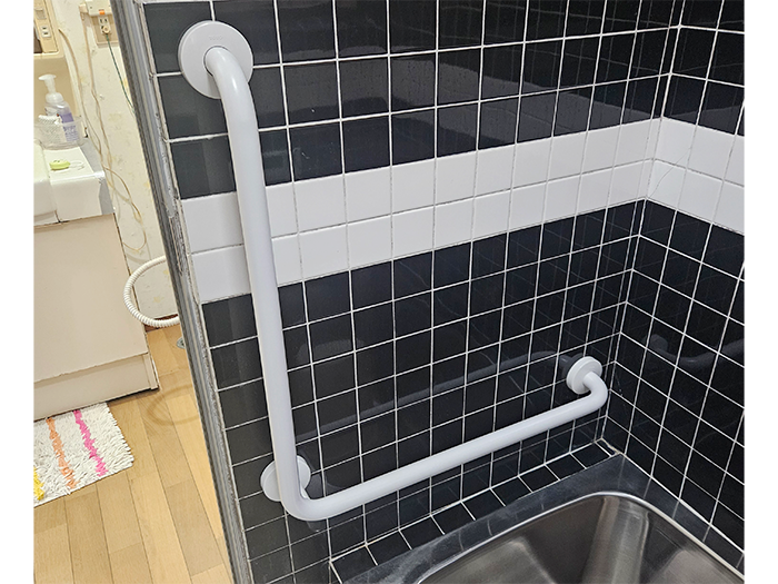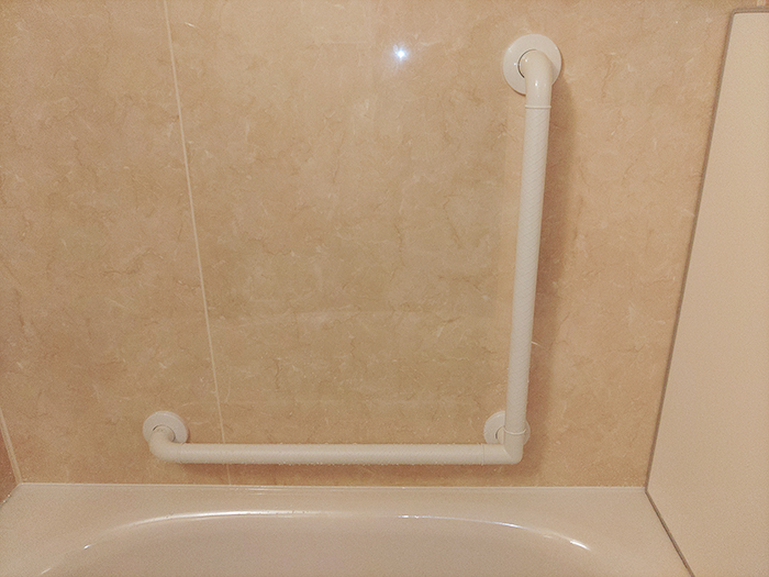 滑りや転倒防止に手すりを付けましょう。水回りに強く優しい樹脂製です。