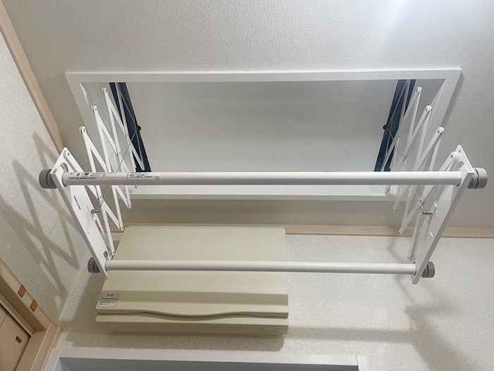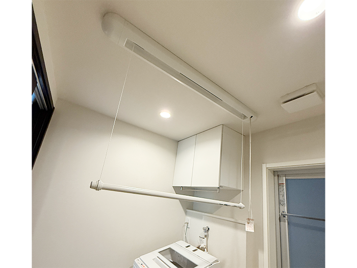 物干しユニットで室内で洗濯物を簡単に干せます。天井付けタイプと壁付けタイプがあります。